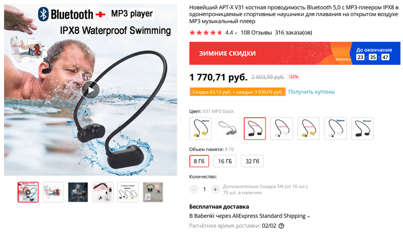 Влагозащищенные наушники костной проводимости. Поддерживают apt-X, имеют встроенный MP3-плеер, то есть могут работать совершенно автономно (что особенно ценно для плавания). Подходят для плавания, велосипеда, любых других видах активности, где нужно, чтобы было слышно, что происходит вокруг. Порекомендовавший наушники их использует, отзывается хорошо. Я заинтересовался, закажу.