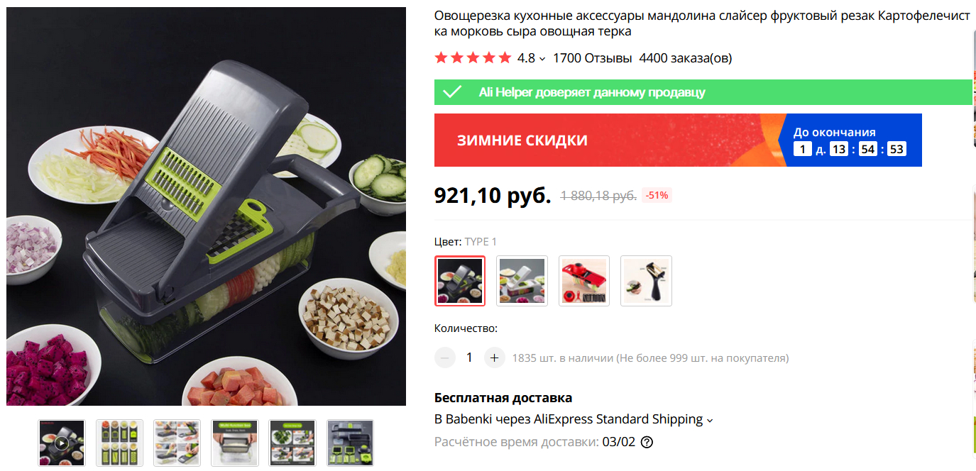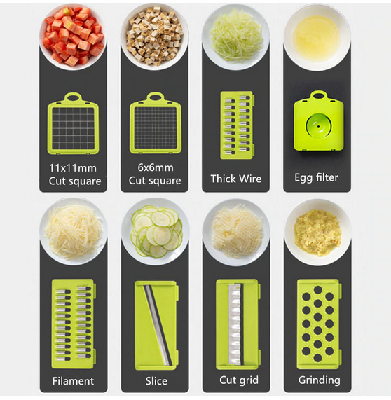 Овощерезка-слайсер. 8 видов измельчителей. Себе заказал: я зеленые салаты ем постоянно, а резать их мне страшно надоедает, да и не умею я нормально все это нарезать.