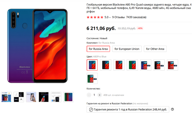 Upd: BlackView A80 Pro снова подешевел. С моим промокодом будет стоить менее 6 тысяч. При этом дисплей 6,49" 720*1560, платформа Helio P25, памяти 4/64 ГБ, аккумулятор 4680 мАч.