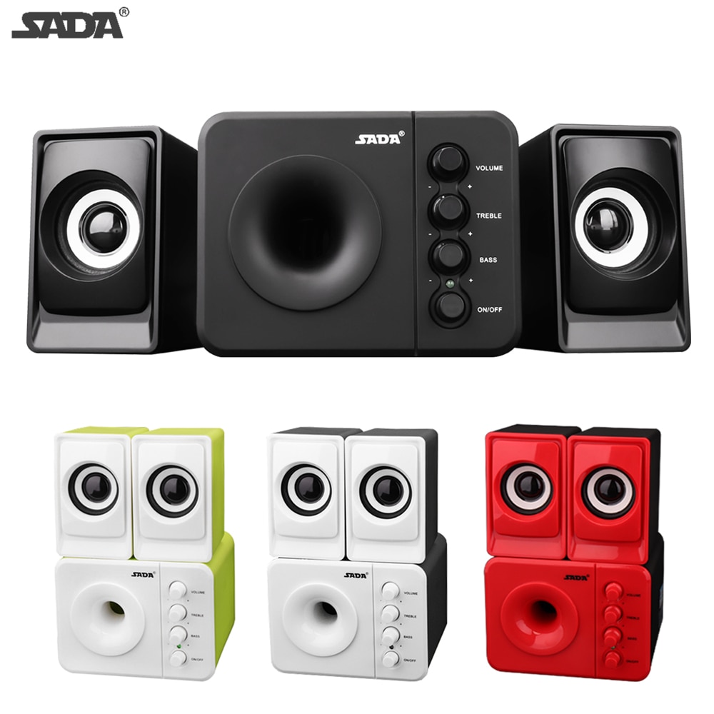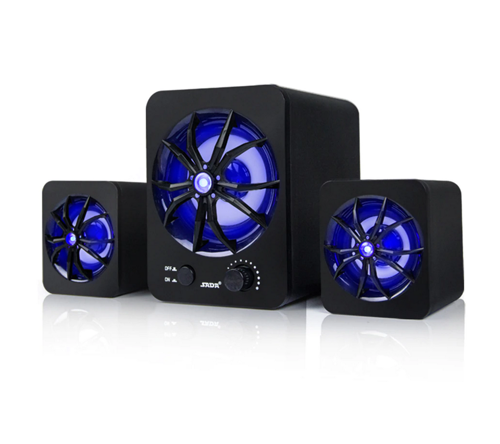 Недорогой компактный набор из трех колонок и сабвуфера с регулировкой громкости и частот.