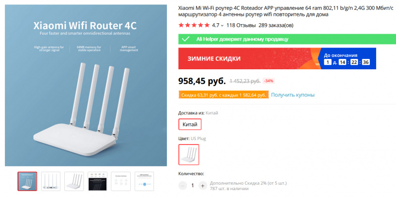 Очень дешевый роутер от Xiaomi с Wi-Fi 802.11 b/g/n 2,4 Гц. Также может работать как усилитель. Два порта 100 мегабит. Для простых задач - самое что надо!