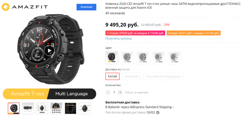 Уже появились в продаже только что представленные на CES новые часы от Huami - AMAZFIT T-Rex. Защищенны по стандарту MIL-STD-810. Работают при экстремальных температурах от минус 40 до плюс 70 градусов. Защищены от ударов. У этих часов 1,3-дюймовый защищенный AMOLED-дисплей с разрешением 360 х 360 пикселей. Что интересно, есть режим Always On Display. Автономность обещают до 20 дней, но это явно без Always On Display. Часы поддерживают 19 спортивных режимов и могут выдерживать погружение до 50 метров. Заказываю, поизучаю.