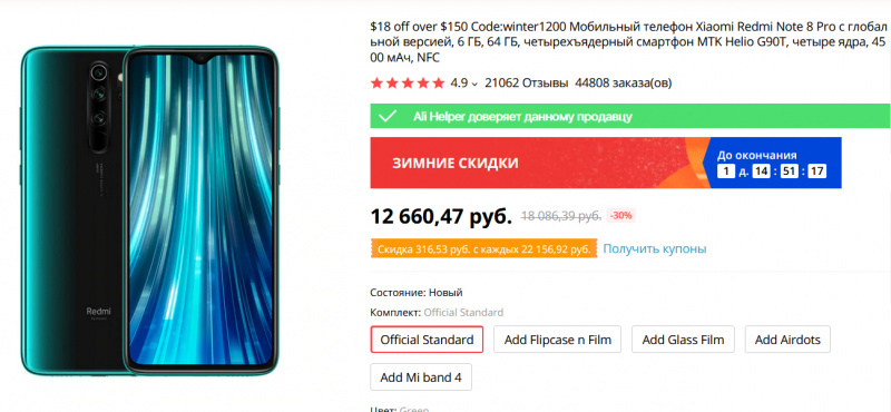 На Xiaomi Redmi Note 8 Pro цена неплохо понизилась, а с учетом промокода winter1200 цена должна быть и вовсе в районе 10 тысяч. Я недавно писал его обзор, он тогда стоил 18 тысяч. Смартфон очень понравился.