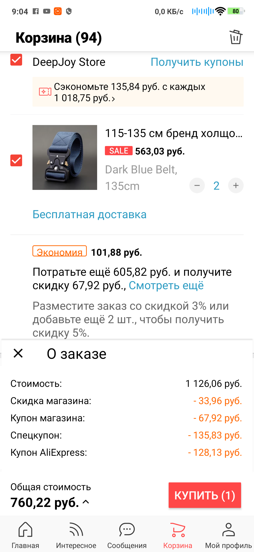 Так, просто напоминаю. Одним купоном можно оплатить несколько заказов из разных магазинов. В корзине выделяешь нужное кол-во заказов и оплачиваешь сразу. Полезно если купон на большую сумму, а купить надо всякой хрени