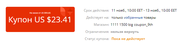 Пока не знаю. И с полученным на экв. 1500р пока тоже не все ясно. В браузере пишет, что он только для избранных товаров и дает ссылку на российский ТМолл, а в приложении "Все товары в любом магазине". Странно это все. Может али, таким образом, стимулирует продажи через приложение, а может глюк...