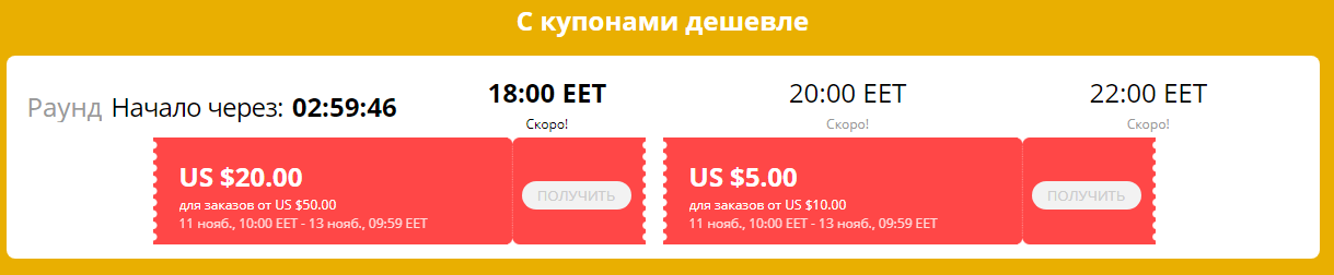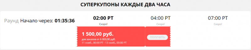 Количество купонов ограничено, поэтому желательно достаточно точно выдерживать время, чтобы успеть.