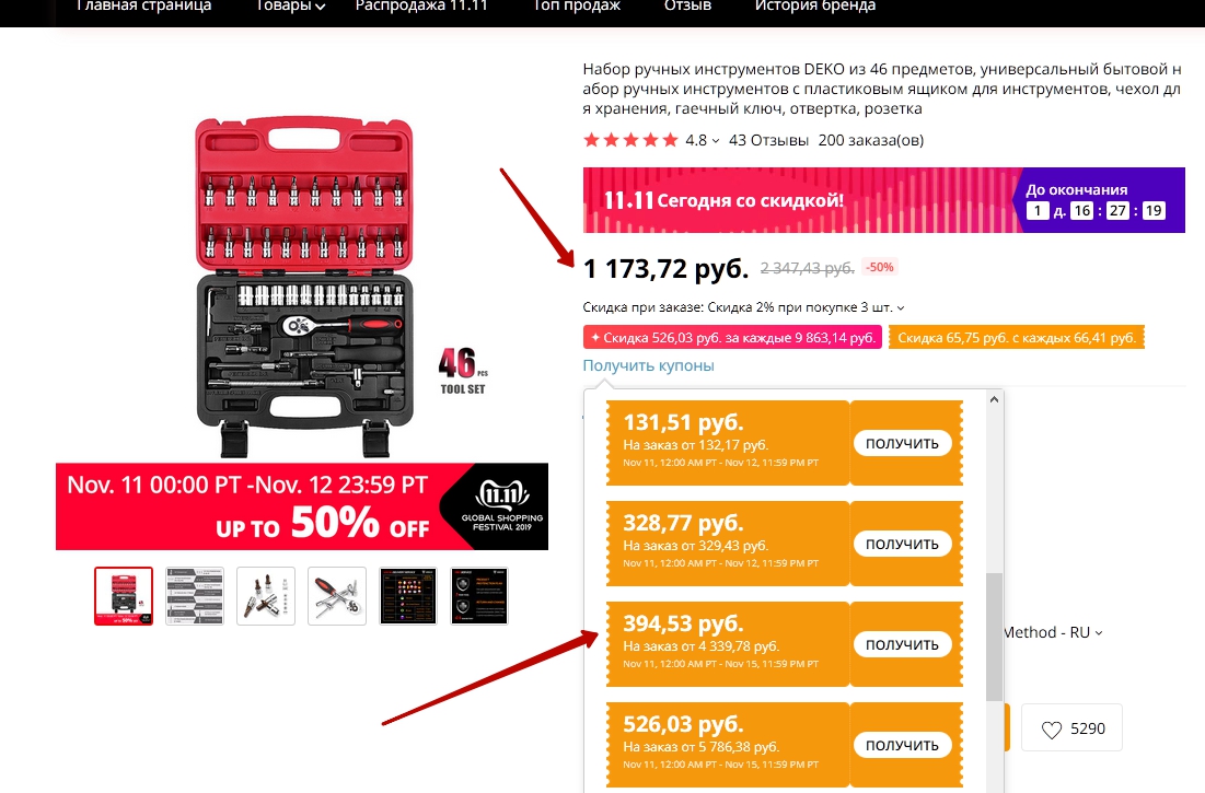 Даже после применения купона ILOVEAE20 (даёт скидку 20 на покупки от 200) и спецкупонов Али цена выше, чем до распродажи 😄