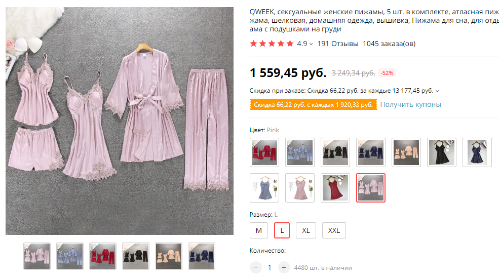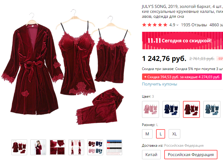 Девочки, смотрите какой пижамный комплект из 4-х предметов, 4 разных цвета, всего за 1243 руб. -- ali.ski