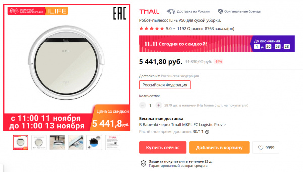 Порекомендовали дешевый робот-пылесос ILIFE V50 всего за 5441 рубль. Проверил - цену на него снизили на тысячу.