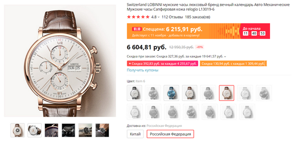 Вот это я заказал из чисто спортивного интереса - китайские часы, косящие под швейцарию. Я уже рассказывал о достаточно пристойных часах за 1,5 евро. Теперь вот заказал более чем прилично выглядящие часы за 6215 - прям интересно посмотреть, как они себя покажут. Но практика показывает, что такие хронометры и ходят достаточно пристойно, и выглядят прилично. Просто действительно  интересно посмотреть, хотя я обычные часы давно не ношу, ношу только умные. .