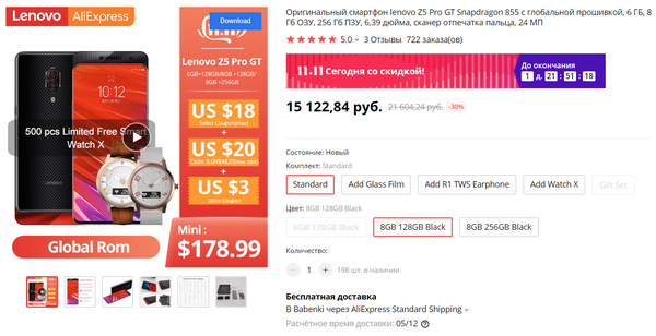 Вот это, конечно, круть - Lenovo Z5 Pro GT за 15122 рубля. За эти деньги: Snapragon 855 (372000 по Antutu), полностью безрамочный экран Super AMOLED 6.39" FHD+, 8/128 ГБ, двойная камера 24/16 Мпикс, аккумулятор 3350 мАч, быстрая зарядка 18 Ватт. Селфи-камера сделана в виде слайдера, то есть выдвигаете ее вверх. На старте продаж стоил 28 тысяч, цена сейчас ниже ровно в два раза. За такие деньги - просто бомба, я считаю. Но - китайская версия с Global ROM. У меня есть Lenovo K5 Pro китайский с Global ROM - никаких проблем, только при получении пришлось сделать сначала полный сброс, чтобы убрать понапиханную рекламу - она полностью пропала.