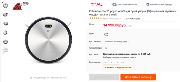 Но сначала так, чисто для справки. Загадочный робот-пылесос Puppyoo wp650, который мы с вами на прошлой летней распродаже купили за 5500 рублей, теперь на том же Tmall обнаруживается за...