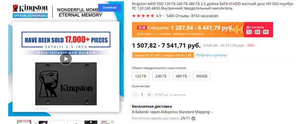 По SSD от Kingston, для Москвы по крайней мере, не актуально. Здесь и без распродаж дешевле. И меньше шансов нарваться на контрафакт с флэшкой внутри.