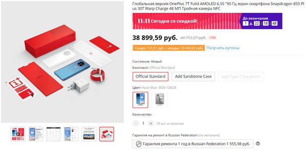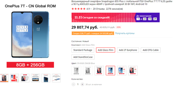Вот тут я в задумчивости. Хотел на распродаже наконец-то купить OnePlus 7T - очень он меня интересует, да и просили неоднократно. Совсем новый смартфон (пришел на смену OnePlus 7), цену на глобальную версию снизили с 46 до 39 тысяч (он по начинке - совершенно топовый, да и обзоры очень хорошие). И это версия 8/128 ГБ. (Мне на самом деле - выше крыши.)