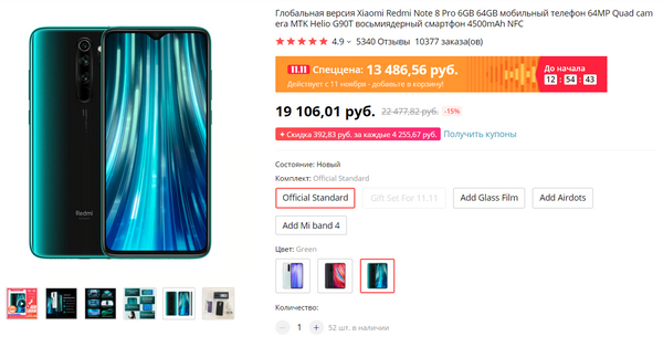 Первый код сработал, дали 511 рублей ($8), купил Note 8 Pro 6/64 зелёный за 13 тысяч.