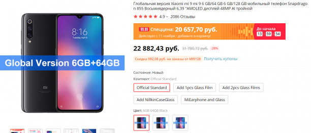 Флагман Xiaomi Mi 9 сегодня можно купить всего за 20 тысяч. (На Яндекс.Маркете он в основном 26-30 тысяч.) Мой обзор. Отличный смартфон, у меня он несколько месяцев был основным телефоном. И уж за 20 тысяч - просто отлично! (Также пишут, что промокод MI9128 должен еще тысячу скинуть.)