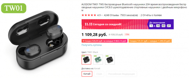 На TWS-наушники AUSDOM TW01, которые мне понравились, цену снизили на 300 рублей. И у них там есть еще версия попроще TW01S за  657 рублей, но я ее не тестировал (там автономность в два раза хуже).