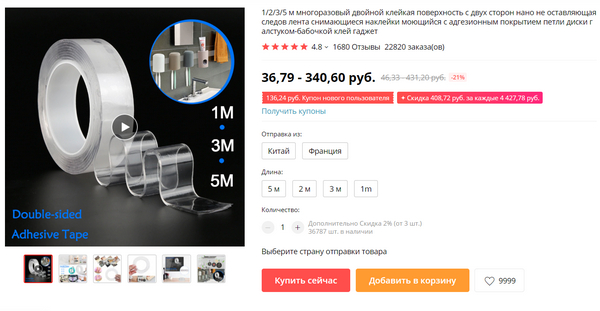 Вот это давно искал - прозрачная двойная липкая лента.