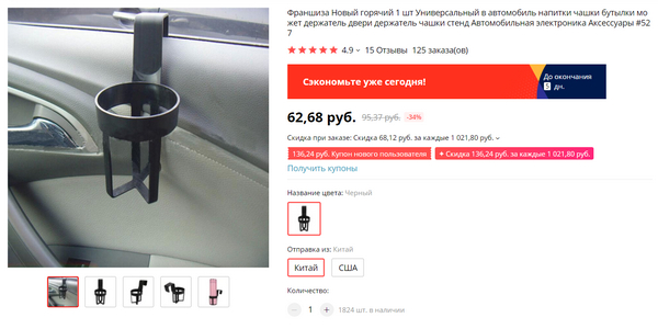 Автомобильный подстаканник для двери. Удобная штука, мне такой пригодится, несмотря на то, что в машине есть подстаканник в центре, но туда мало что влезает. А в этот должно влезть.