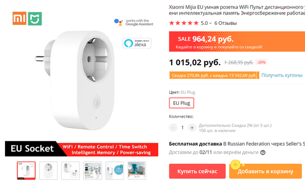 думаю заказать несколько девайсов для умного дома, в этом магазине неплохие скидки.