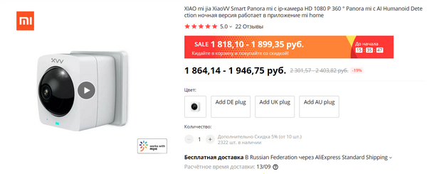 Потолочная видеокамера Mijia XiaoVV на 360 градусов с ночным режимом, беспроводным или проводным режимом работы, с управлением со смартфона. Качество - FullHD. Скидка там копеечная, но я такую давно искал - заказал себе поизучать.