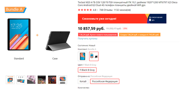 Недорогой 10-дюймовый планшет Teclast M20 - 4/128 ГБ на Helio X23 и аж с двумя симками. Есть в комплекте с чехлом-подставкой. Доставка со склада в РФ.