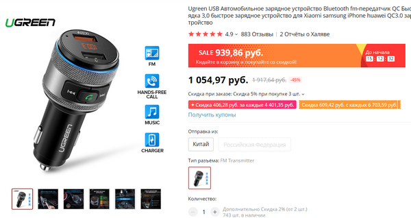 Полезная штука для автомобилистов, у которых медиасистема не работает со смартфоном. Это быстрая зарядка от Ugreen c двумя USB (один выход поддерживает QC 3.0), при этом одновременно - FM-трансмиттер, позволяющий превратить старую магнитолу в Hands Free для смартфона. Также этот адаптер позволяет воспроизводить музыку со вставленной флешки через магнитолу.
