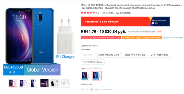 Глобальная версия Meizu X8 4G 64G с купонами за 8455 руб.