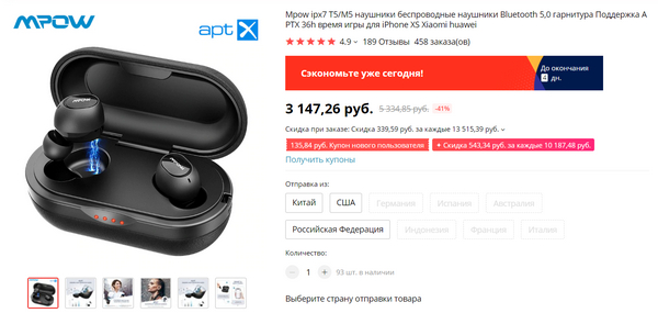 TWS-наушники Mpow T5, которые я обозревал, подешевели на 500 рублей -  хорошая скидка. Плюс еще купонами можно цену уменьшить.
