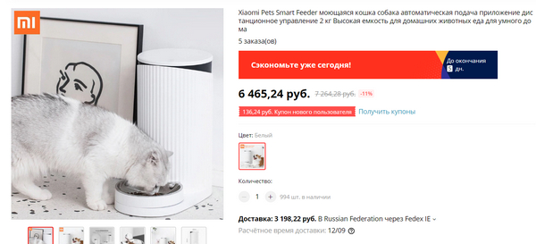 Мне такая штука без надобности - кот Бублик отлично питается Святым духом, - а вот кошатникам-собачникам может понадобиться: Xiaomi Pets Smart Feeder. Причем еще и входит в систему умного дома Xiaomi, так что домашний любимец порцайку может получать и дистанционно со смартфона, а не только по таймеру устройства.
