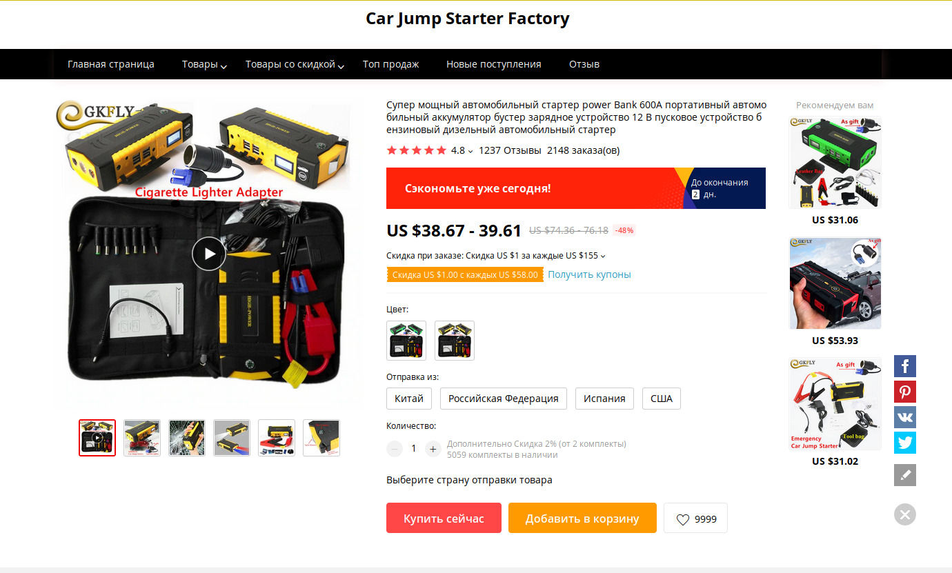 Не знаю, было ли здесь - power bank весом 480г 12V 600A (автомобильный). Тут написано - скидка с 74 до 38 долларов, ну у меня графиков цены нет, но на прошлой распродаже было 42$. С полицейской мигалкой и прикуривателем)