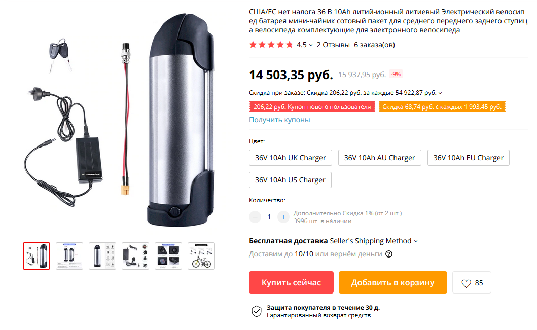 Вот хороший вариант батареи на 36V/10Ah