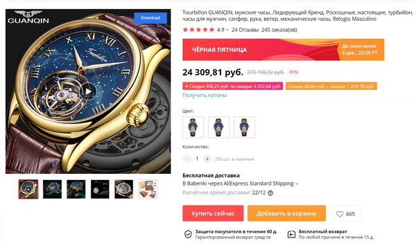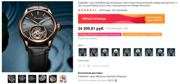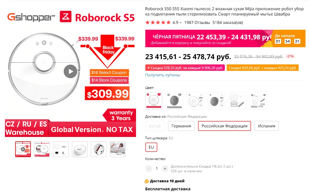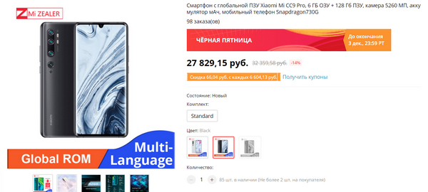 Лучше заказывать как только стартанет распродажа (29.11 11:00) так как промокод на скидку 1410₽ ($22) быстро сметут.