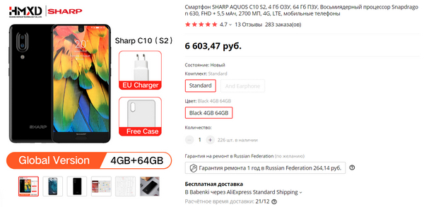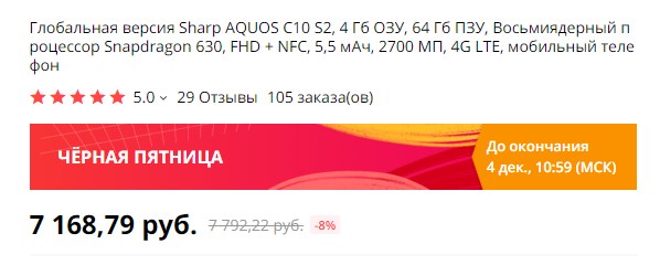 Бюджетный смартфон с NFC и приличными характеристиками - SHARP AQUOS C10 S2. 4/64 ГБ. С промокодом  friday10 обойдется в $90.