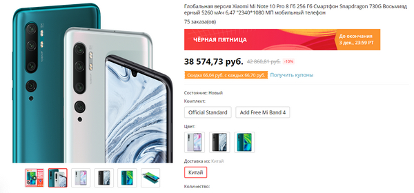 Xiaomi Mi Note 10 Pro скинули 4000, а с купонами с промокодами еще настолько же дешевле выйдет