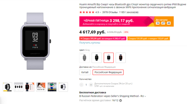 На отличные Amazfit Bip (мой обзор) цену уронили до исторического минимума - 3298 рублей.