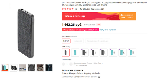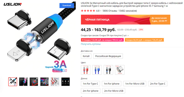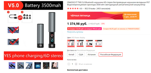 У китайцев, конечно, главная распродажа года - на День холостяка 11 ноября, однако ноябрьскую "Черную пятницу" (четвертая пятница ноября) они также никак не игнорируют, поэтому есть и купоны, и промокоды на скидку, и более или менее реальные скидки на определенные товары (хотя замечу, что их значительно меньше, чем 11 ноября).