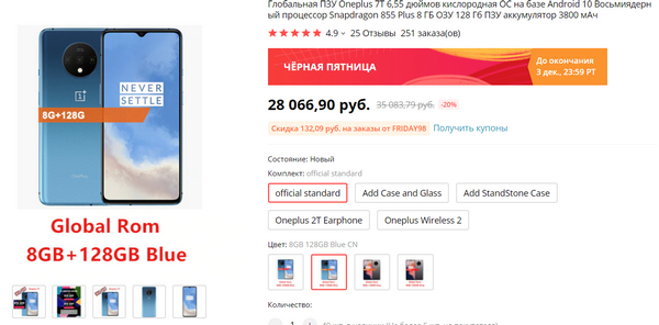 Крутой OnePlus 7T с глобальной прошивкой подешевел на пару тысяч даже по сравнению с 11.11 - я его тогда заказал за 30 с чем-то тысяч. И он 8/256 ГБ за эти деньги!