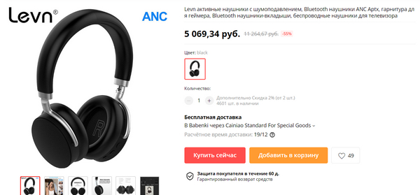 Интересная ситуация. Наушники LEVN ANC - беспроводные полноформаты с активным шумодавом и с поддержкой aptX. Выглядят очень пристойно, бренд известный. Цена для такого комплекта - вполне привлекательная.
