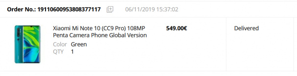 Как интересно. 11 ноября я купил Xiaomi Mi Note 10 (он же Mi CC9 Pro) за  €549. (Там, правда, сработал промокод на крутую скидку, но в итоге все-равно получилось €450.)