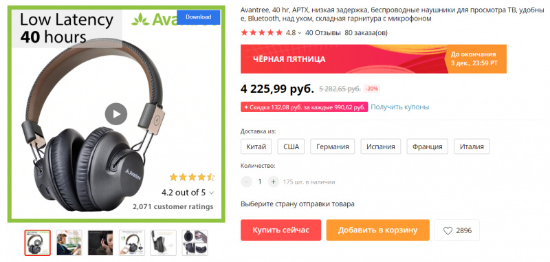 Тоже интересный вариант - хорошие беспроводные наушники с aptX Avantree Audition Proобозревал Avantree Audition). Обычная цена 5200 рублей, сейчас сделали скидку, также если использовать спецкупоны и промокод, то цену можно и вовсе догнать до 3250 рублей, что уж совсем хорошо за такие наушники.