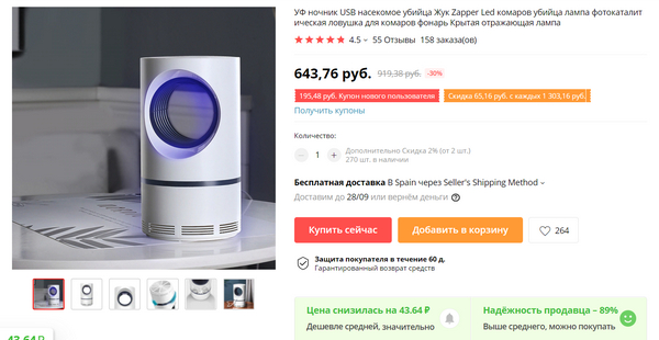 Покупал такую лампу на Амазоне (т.к. в штатах почему-то в принципе не существуют фумигаторы), за 2 месяца использования ни одного комара не поймала, отправил обратно.
