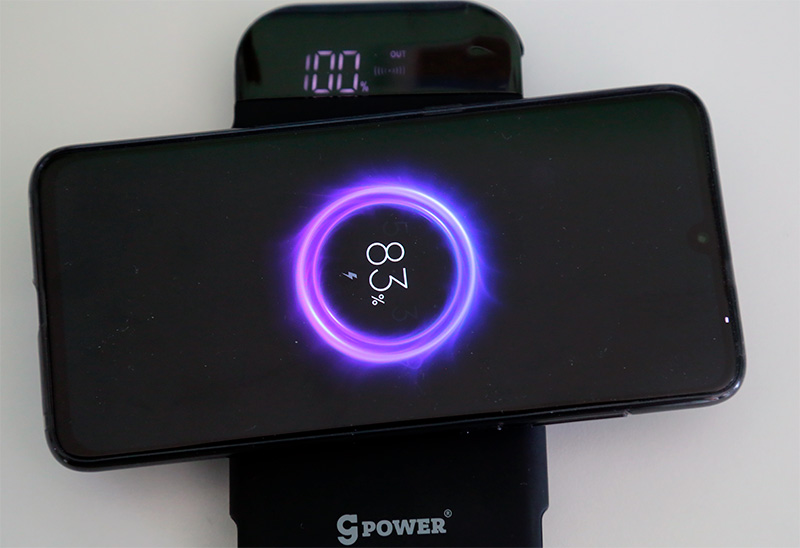 Ну и, конечно же, проверил, как он одновременно заряжает сразу три устройства - два по проводу, один по беспроводу. Нормально заряжает. Понятно, что скорость заряда сразу трех устройств будет ниже, чем одного, но тем не менее.