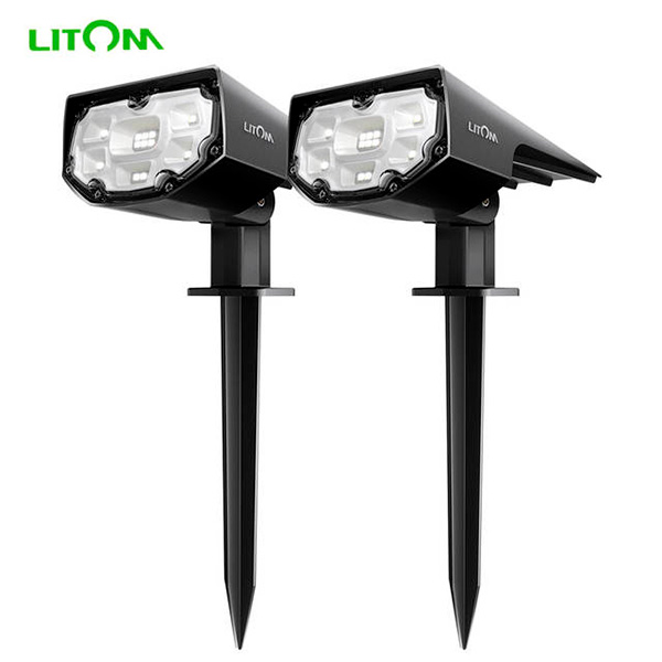 Для газона взял две вот таких LITOM 12 - по 12 светодиодов, мне там особо яркие лампы не нужны. У этих датчика движения нет, они имеют два режима работы: автоматически включаются, когда темнеет, могут светить неярко или на полную яркость.