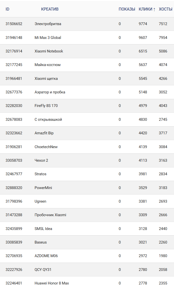 Никаких проблем, вот статистика за прошедшие полгода (больше партнерка не выдает) - Top 20 устройств, вызвавших наибольший интерес.