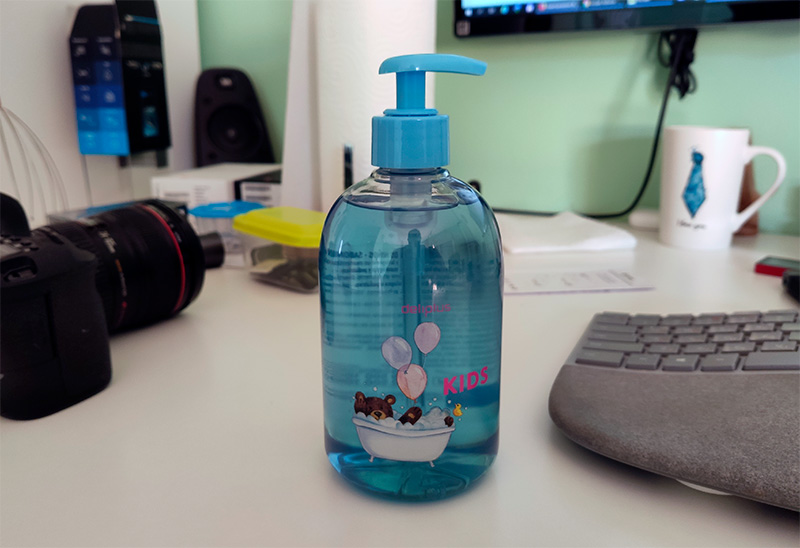 А я как раз проверил, сколько мне этот дозатор экономит. Написал я о нем ровно месяц назад. Вот сегодня как раз закончилась первая порция, куда я налил четверть вот такой бутылочки с жидким мылом. (Я покупаю детское мыло, потому что оно безо всяких ароматизаторов и отдушек.)