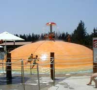 Но еще больше удовольствиядоставлял аттракцион, название которого яуже не помню. Он представлял собой некоедовольно сложное сооружение (вы его видитена фотографии), в котором вода лиласьотовсюду: из душей, водопадов, из водяныхпистолетов и автоматов, различных ведер иемкостей. Само сооружение было похоже напьяный бред архитектора, находящегося всостоянии перманентного "сушняка",однако на аттракционе активно развлекалисьне только дети, но и взрослые. Впрочем, увзрослых были свои интересы... Дело в том,что хитом программы этого аттракциона былоопрокидывание огромного ведра с водой ("ведром"я это назвал для проформы, на самом деледанная емкость больше напоминала цистернув виде ведра) на покатую крышу, с которойвода затем падала в бассейн мощным, нократковременным водопадом. Новички,радуясь чему-то своему, залезали под крышу иждали водопада. Однако напор воды был такимсильным, что с некоторых просто-такисметало плавки и бикини. Поэтому знатокиразвлекались следующим образом: удобнорасполагались на шезлонгах, не теряя извиду водопад, и ждали, когда с какой-нибудьсимпатичной девушки смоет лифчик. Ждать,что характерно, обычно приходилось недолго.А уж когда девушка начинала смущаться,поворачиваться спиной и пыталась быстро-быстронайти свой лифчик в воде - и от этогостановилась еще более прекрасной, - народпросто выл от восторга и разражался бурнымиаплодисментами.