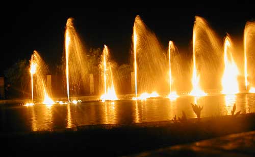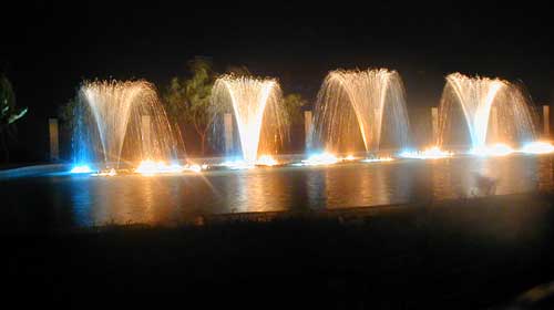 Ровно через полтора часаначалось шоу. Однако туристы его так долгождали, что первые десять минут на фонтанывообще никто не обращал ни малейшеговнимания. Туристы бродили взад-вперед,фотографировались и пытались получитьзаказанные напитки. Однако Катя проявилаактивность и несколько раз объявила, чтовон те цветные струйки, оргазмическиподергивающиеся под звуки музыки - и есть тесамые танцующие фонтаны, которые являютсяцелью нашего путешествия и венцомпрограммы. Так что туристы потихонькууспокоились и попытались проявить интереск этому шоу.