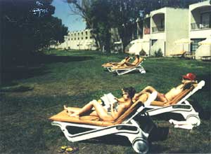 В первый же день мы сделали традиционную для многих отдыхающих ошибку: стали загорать под солнцем без зонтиков, наплевав на кремы против солнца. Дело в том, что я ненавижу все эти кремы. Для меня дикость - мазаться кремами для загара, против загара, для солнца и против солнца. Что это за отдых, думаю я, когда нужно долго и нудно натираться, а затем повторять ту же процедуру после каждого купания. Да и под зонтиком загорать - как-то странно. Уж если пришел на пляж, думал я, так подставь под солнце всего себя целиком.
