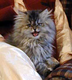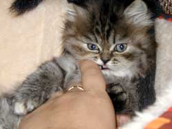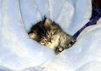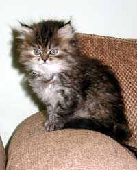 Нюся приехала к нам домой и стала, как говорится, жить-поживать. Честно говоря, у всех моих друзей и родственников, когда они видели этот маленький пушистый комочек, лежащий в углу дивана, на глаза наворачивались слезы - уж больно трогательно выглядела маленькая Нюся (ей тогда только-только исполнился месяц), которая казалась такой несчастной и беззащитной.
